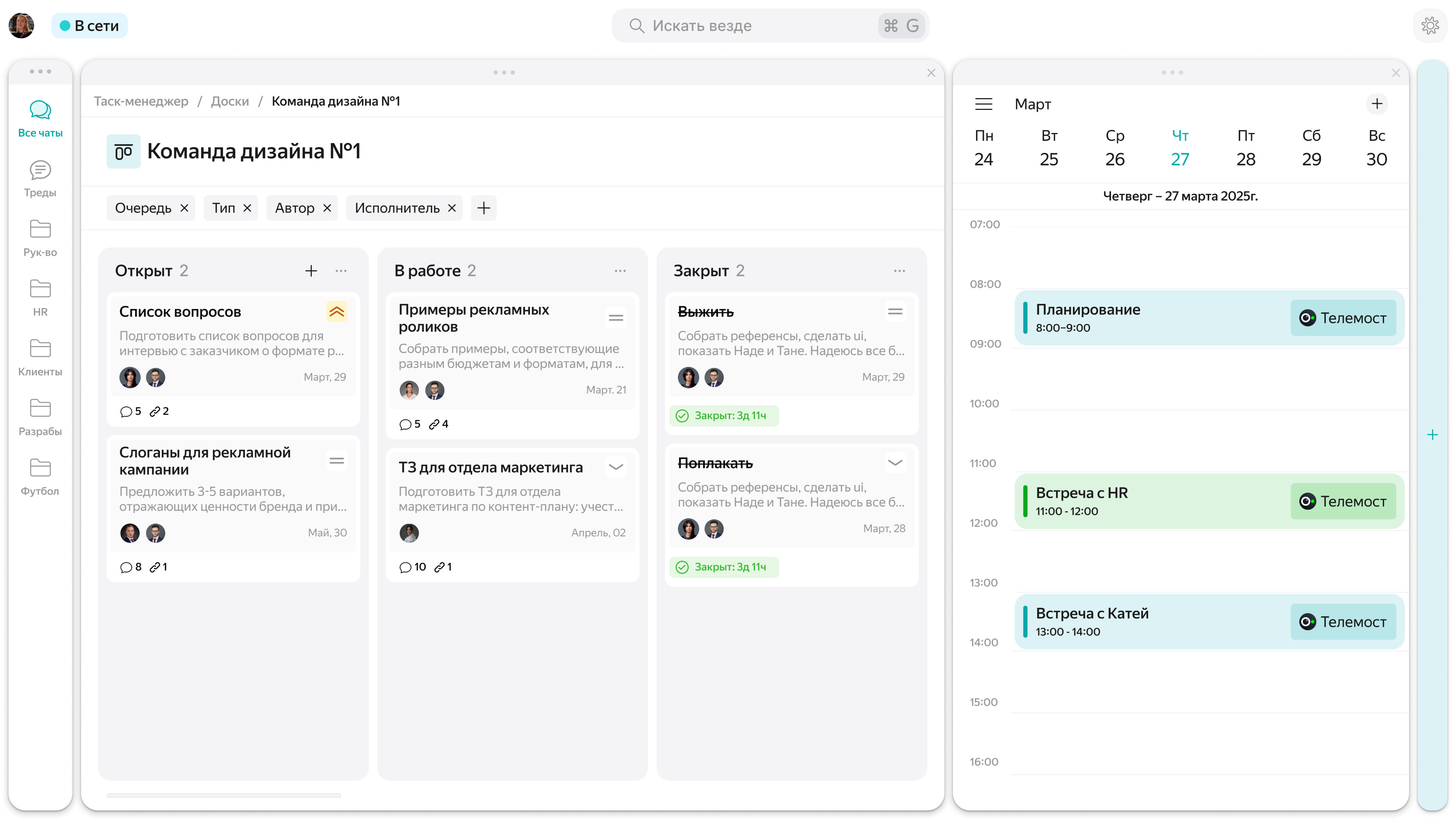 Решение: Внедрение в Яндекс Мессенджер умного поиска, календаря и канбана. Теперь посмотреть и назначить встречи можно прямо из мессенджера